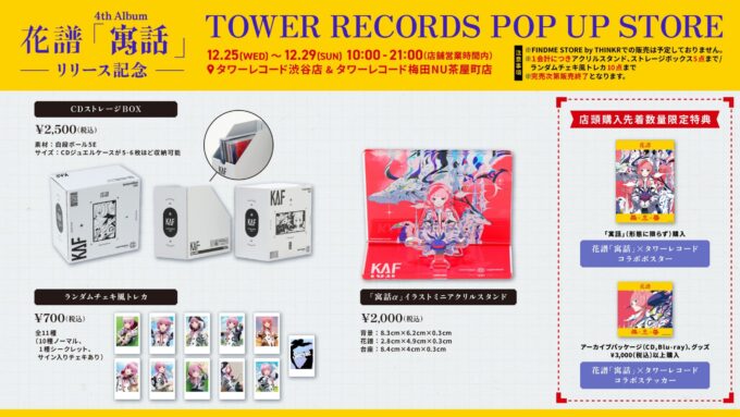 バーチャルシンガー・花譜 4thアルバム「寓話」のリリースを記念したポップアップストアがタワーレコードにて開催