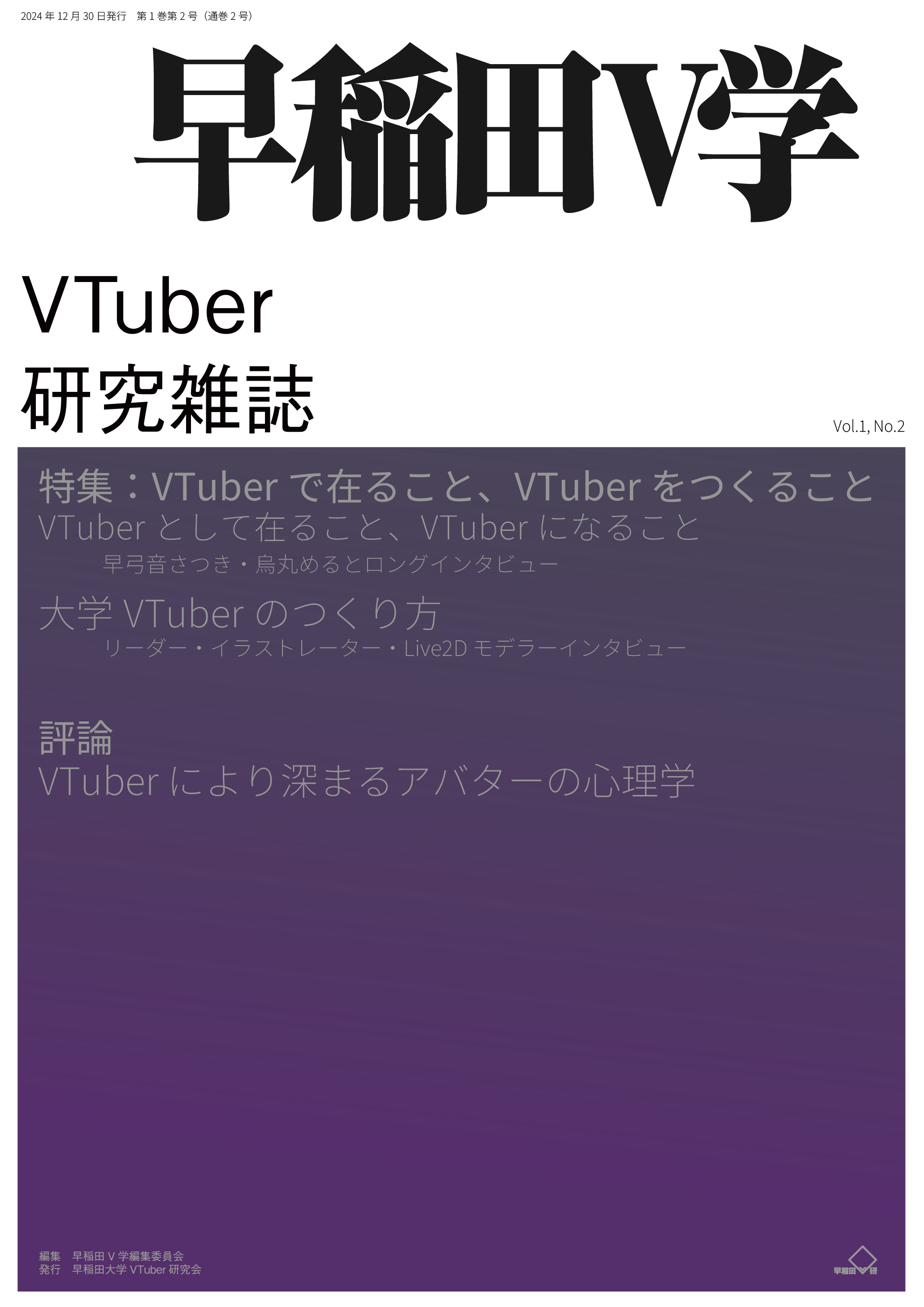 早稲田V学 第1巻第2号(特集=VTuberで在ること、VTuberをつくること)