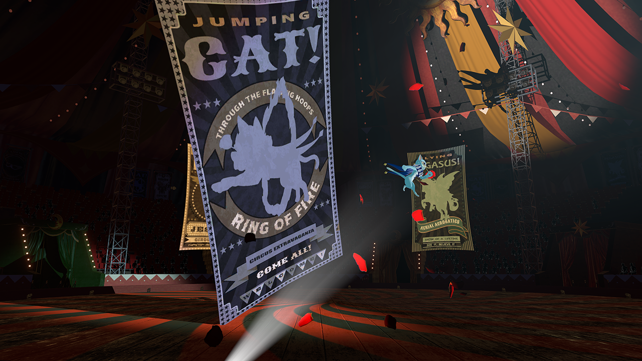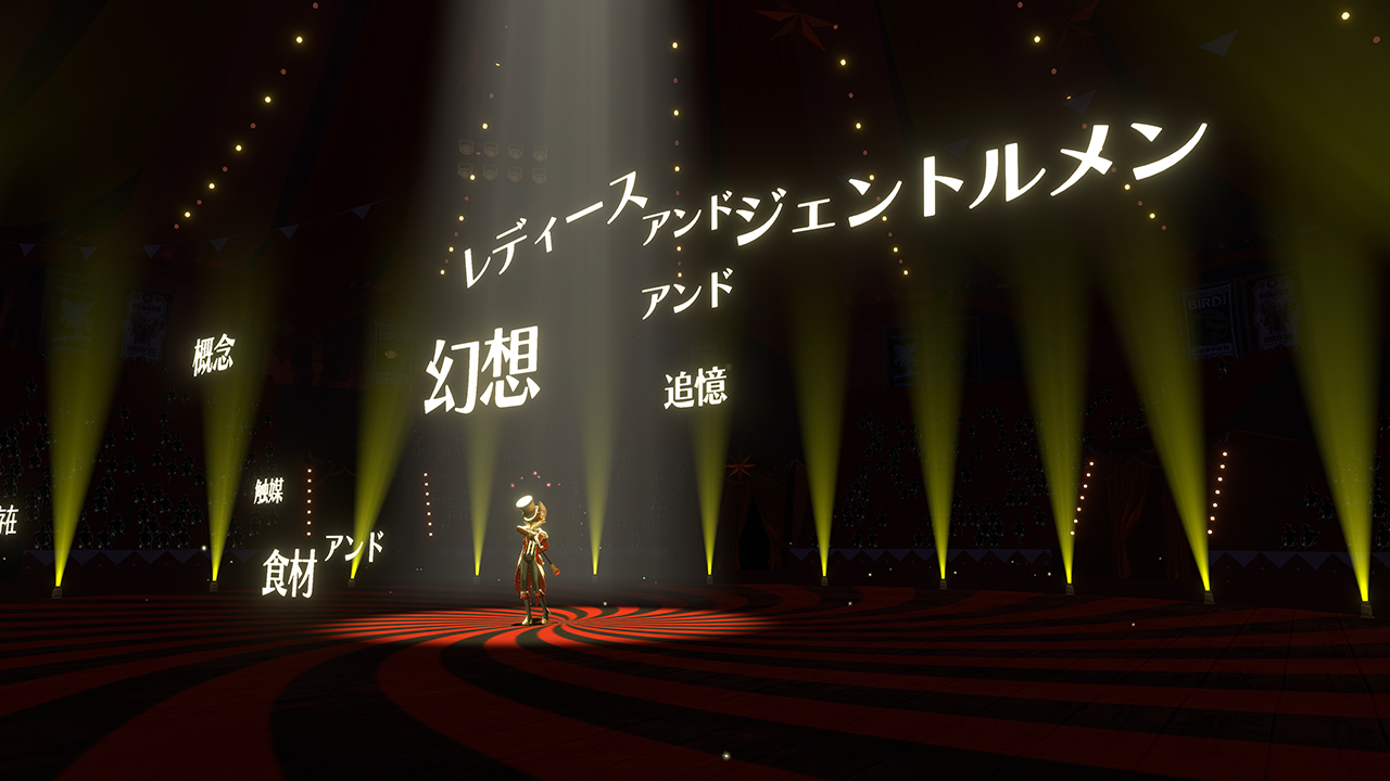 サーカスがテーマの一般ワールドで、並んでいるブースを見つつ、たびたび現れるサーカスのテントではパーティクルライブ形式の演目が上演される。見ながら進むワクワク感を楽しもう。