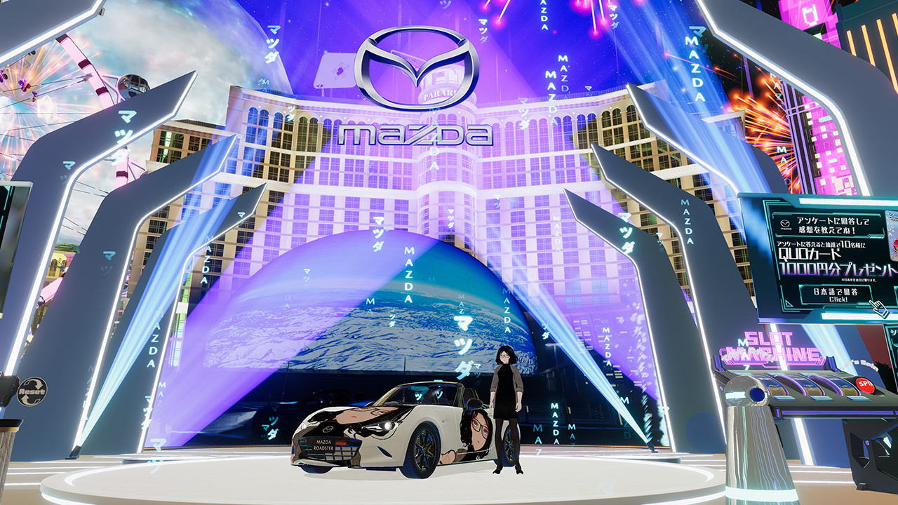 「パラリアルラスベガス」のMAZDAブースでは、自分のアバターをMAZDAのロードスターにデカールとしてプリントできる「自分のアバターの痛車」を作れるようなギミックが楽しい。自分のお気に入りのアバターがでかでかとプリントされた車と写真を撮ってみよう!