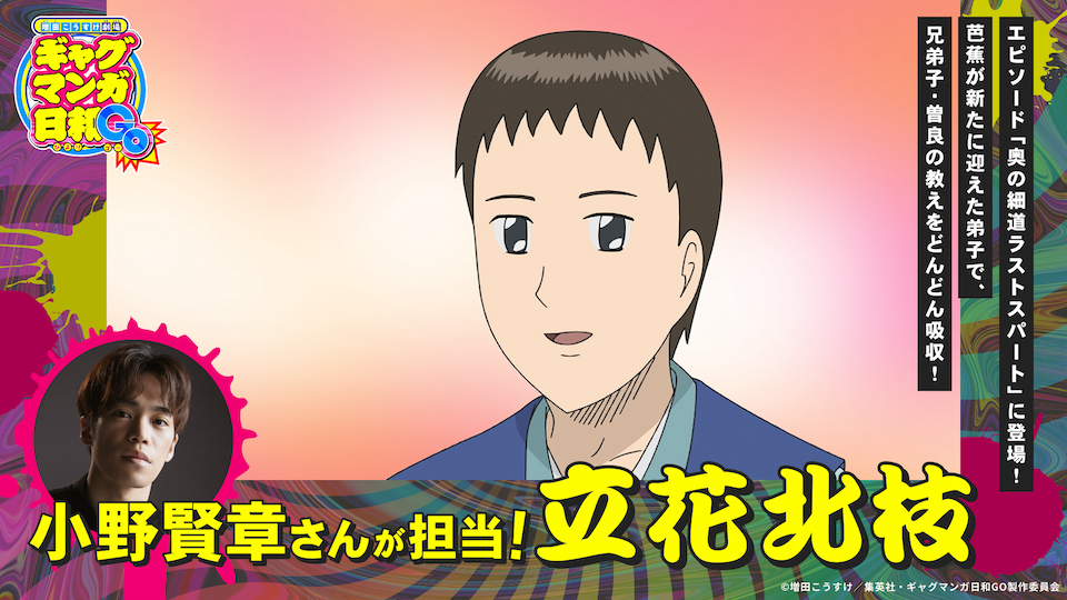 また、「増⽥こうすけ劇場ギャグマンガ⽇和GO」の特報PVも公開された。冠徹弥(THE冠)が歌唱するエンディングテーマ「ハッピーエンディング」が本アニメ⽤に新録されたバージョンにのせ、賑やかかつシュールに展開される映像となっている。また、うさみちゃん(CV:佐藤なる美)、クマ吉くん(CV:前⽥剛)、松尾芭蕉(CV:内藤玲)、河合曽良(CV:前⽥剛)、聖徳太⼦(CV:前⽥剛)、⼩野妹⼦(CV:⽵本英史)の⼀部ボイスが公開。旧作からも馴染みのある「変態という名の紳⼠なんだよ」のセリフにも注⽬だ。