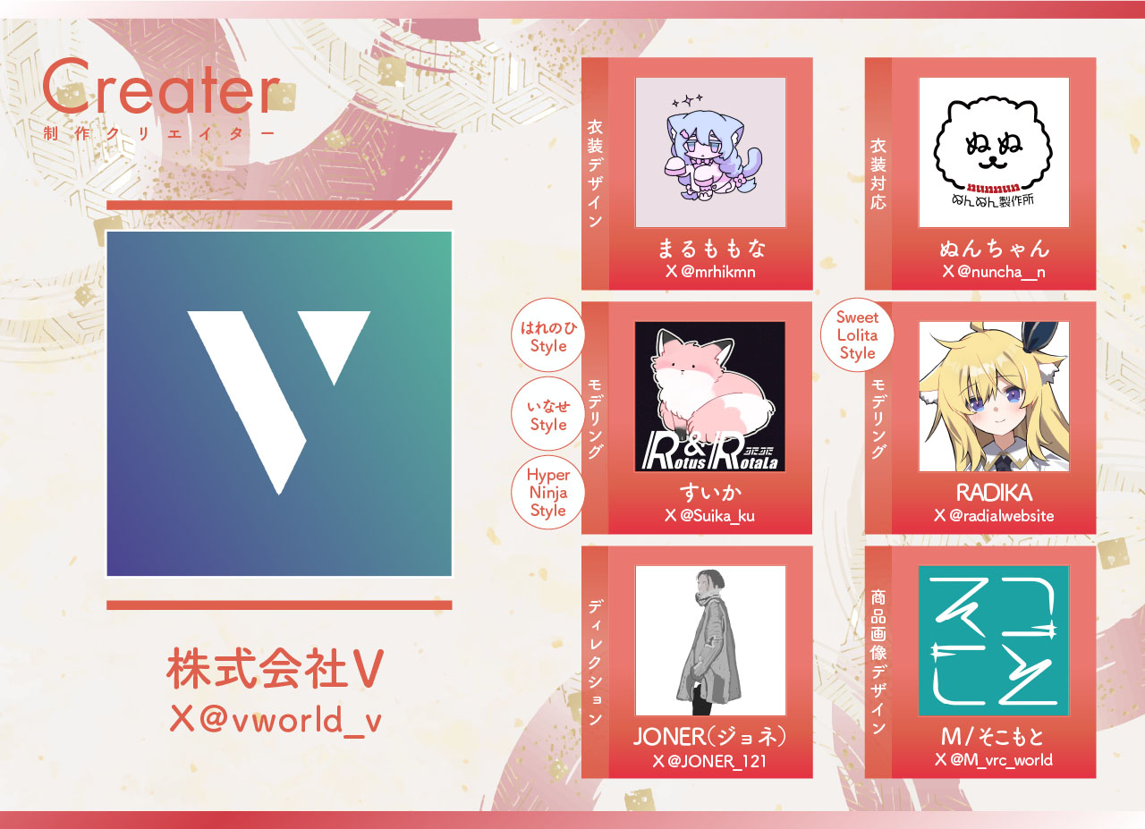 12月26日12時より第一弾の「【3D 衣装】はれのひStyle<VRC 対応>」と「【3D 衣装】いなせStyle<VRC 対応>」、1月1日0時より第二弾の「【3D 衣装】Sweet Lolita Style<VRC 対応>」と「【3D 衣装】Hyper Ninja Style<VRC 対応>」をそれぞれ発売する。価格は各3500円(税込)。
