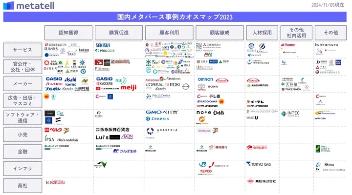 株式会社Urth 株式会社Urth(本社:東京都新宿区、代表取締役:田中大貴、以下“当社”)は、2023年の1年間のメタバース活用の事例をカオスマップとして無料公開いたしました。 昨今、メタバースの活用は広がりを見せ、様…