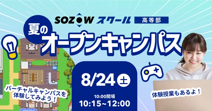 SOZOW株式会社 「好奇心を解き放ち、自分らしい未来をSOZOWできる社会をつくる」をビジョンに掲げるSOZOW株式会社(所在地:東京都品川区、代表取締役:小助川 将)は、通信制高校サポート校である「SOZOWスクール…