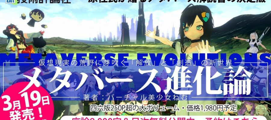 メタバース文化エバンジェリスト・VTuberのバーチャル美少女ねむさんは、技術評論社より書籍「メタバース進化論──仮想現実の荒野に芽吹く「解放」と「創造」の新世界」を3月19日発売することを発表した。価格は1980円(税…
