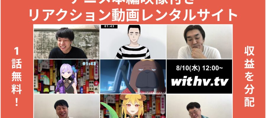 avaren株式会社 本日2022年8月10日(水)12:00よりavaren株式会社(本社:福岡県福岡市、代表取締役:桐原徹真)は、アニメ本編映像付きリアクション動画レンタルサイト「withv.tv」(読み方:ウィズブ…