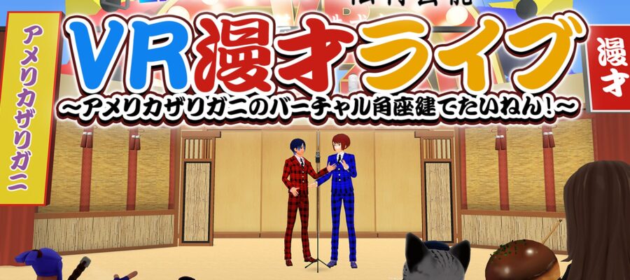 松竹芸能株式会社 この度、(株)バーチャルキャスト及び松竹芸能(株)は、以下の公演を開催させていただきます。公演詳細につきましては以下を参照ください。 ●公演情報題:「VR 漫才ライブ~アメリカザリガニのバーチャル角座建…