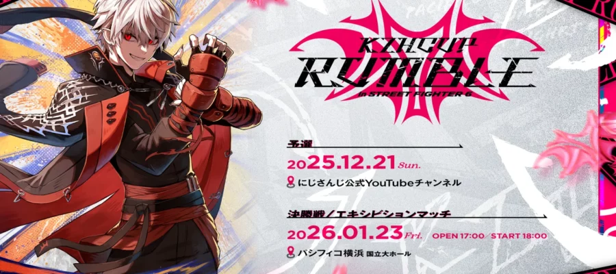 ANYCOLOR株式会社 葛葉主催のゲーム大会「KZHCUP」のリアルイベント「KZHCUP RUMBLE」の開催が決定! 今回プレイするのは『ストリートファイター6』。 予選を2025年12月21日(日)に行い、決勝戦…