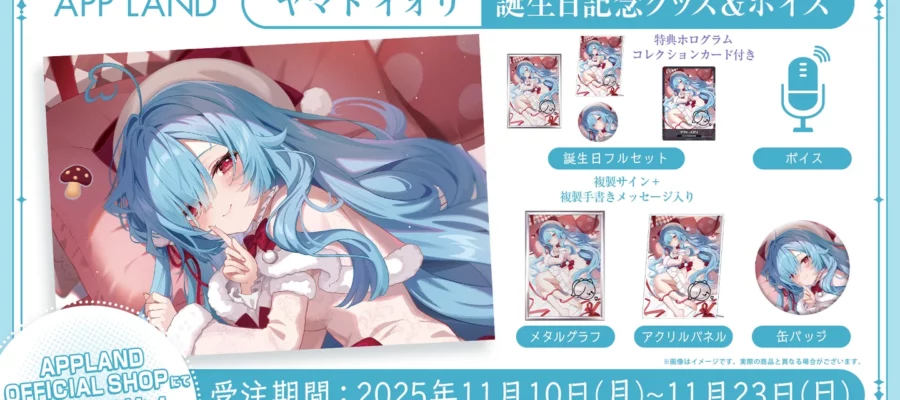 株式会社アップランド 2025年11月10日(月)に誕生日を迎えるヤマト イオリの誕生日記念グッズ&ボイスを、当社が運営する公式グッズ販売サイト(APPLAND OFFICIAL SHOP)にて販売いたします!記…