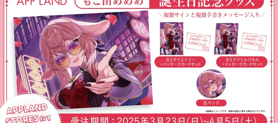 株式会社アップランド 3月23日(日)に誕生日を迎えるもこ田めめめの誕生日記念グッズ&ボイスを、当社が運営する公式グッズ販売サイト(STORES)にて販売開始!記念ボイスにはVRバージョンが用意されており、BOOTH上で…
