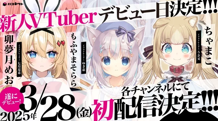 アナログ 2024年12月4日(水)よりデビュー準備を開始し、YouTubeチャンネル登録者数1,000人で初配信デビューを達成した「卯夢月 めお」「もふやまそらら」「ちゃまこ」のYouTubeでのデビュー日が決定いたし…