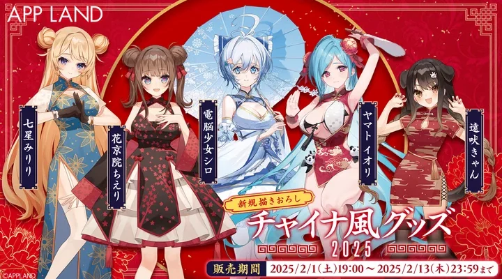 株式会社アップランド 『APPLAND チャイナ風グッズ 2025』に関して、当社が運営する公式グッズ販売サイト(STORES)にて2025年2月1日(土)より販売スタート!電脳少女シロ、花京院ちえり、ヤマト イオリ、七…