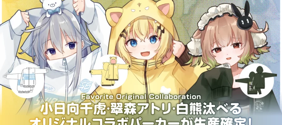 アナログ ハコネクト所属3期生「小日向千虎」、5期生「翠森アトリ」「白熊汰べる」と、ワンピース専門店「Favorite」のオリジナルパーカーが、2025年10月20日(月)より予約販売を開始し、ご好評につき10月28日(…
