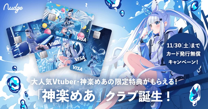 ナッジ株式会社 ナッジ株式会社(本社:東京都千代田区、代表取締役:沖田 貴史、以下「ナッジ」)は、次世代クレジットカード「Nudge(ナッジ、以下「ナッジカード」)」において、2024年10月25日に人気VTuber「神…
