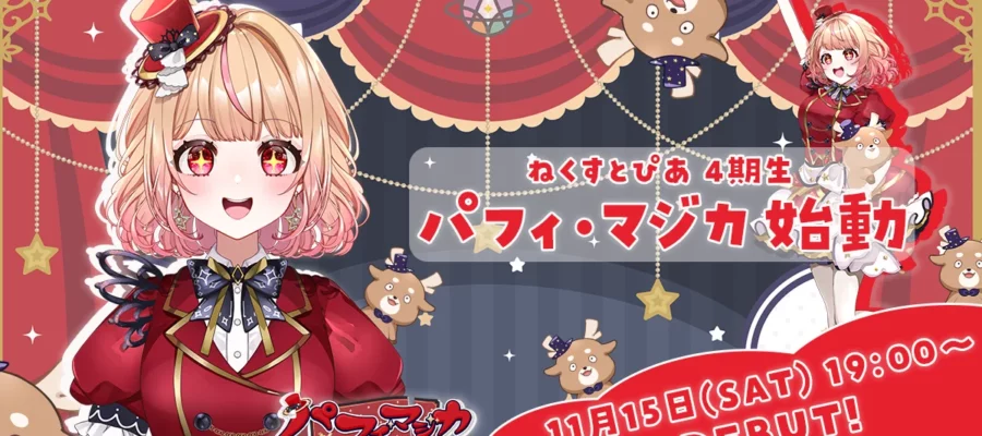 株式会社ホリプロ 株式会社ホリプロが運営するバーチャルライバープロジェクト「ねくすとぴあ」は、2025年10月18日(土)、4期生「パフィ・マジカ」のデビューを発表いたします。 本日19時より、公式YouTubeチャンネ…