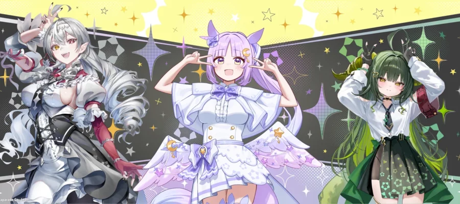 QUEST VTuberプロダクション「QUEST株式会社」(本社:東京都目黒区、代表取締役:大畑仁徳)の運営するVTuberユニット「Stellarhyth」のメンバー(火華いる、甘噛ぱく、駆空なぎ、謎時よみ、霊守もく…
