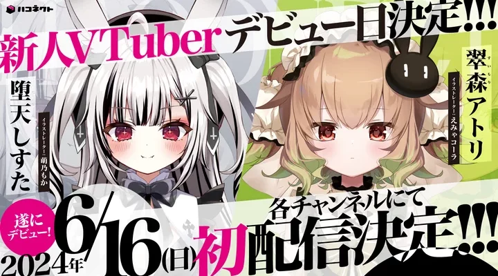 ハコネクト VTuber事務所「ハコネクト」では、2024年デビュー組の第1弾として「堕天しすた」、「翠森アトリ」のYouTubeでのデビュー日が決定いたしました。 YouTubeでの初配信は各ライバーのチャンネルにて、…