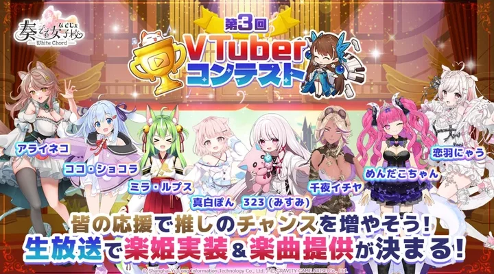 グラビティゲームアライズ株式会社 グラビティゲームアライズ株式会社(所在地:東京都中央区)は、『奏でて女子校 ~ なでじょ ~』にて、3月28日(木)より、第3回VTuberコンテストを開催することをお知らせいたします。…