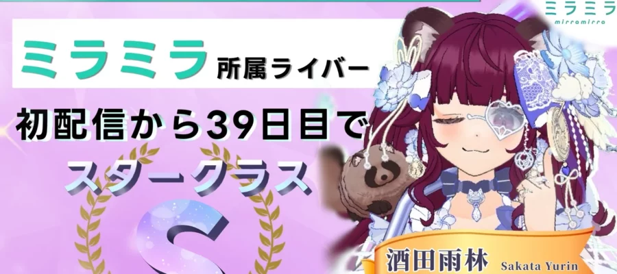 OTAGROUP株式会社 OTAGROUP株式会社(代表取締役:下西 竜二)はスマホ画面共有型ゲーム配信プラットフォーム「Mirrativ」パートナー事務所「ミラミラ」に所属するライバー「酒田雨林」が初配信から39日目で…