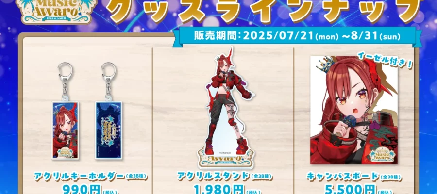 株式会社メディアリンク バーチャル音楽フェス『Virtual Music Award 2025 SUMMER(ブイアワ)』の開催に先駆け、公式グッズの販売が7月21日(月)13:00よりスタートいたしました。 本グッズで…