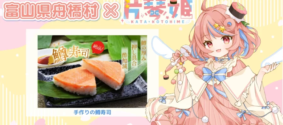 株式会社あるやうむ VTuber「片琴姫」と富山名物・鱒寿司がコラボをして富山県舟橋村のふるさと納税の返礼品として11月17日(月)19時より提供開始しました。返礼品は株式会社あるやうむ(本社:北海道札幌市、代表取締役:…