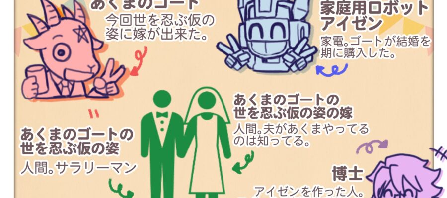 12月16日、VTuberのあくまのゴートさんと家庭用ロボットアイゼンさんは共同でTwitterで発表を行い、あくまのゴートさん(世を忍ぶ仮の姿)が結婚したと報告した。 発表では、あくまのゴートさんが、家庭用ロボットアイ…