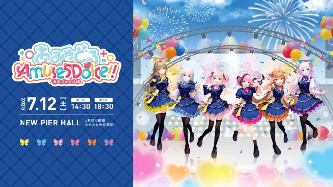 VTuber6名によるアイドルユニット「あみゅどる」が、7月12日(土)ニューピアホールにて開催する5Dライブイベント、「あみゅどる Amuse 5 Dolce !! ~全力アイドル編~」の、2次先行となる個…