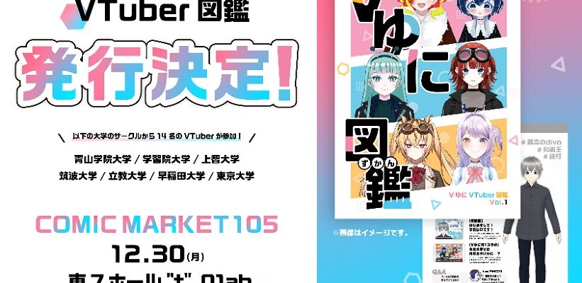 関東VTuber学連は26日、「VゆにVTuber図鑑」Vol.1を、コミックマーケット105にて頒布することを発表。VゆにVTuber図鑑は、関東VTuber学連に所属する7大学のサークルと14名のVTuberを紹介す…