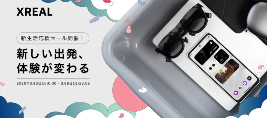 XREAL AR(拡張現実)グラスを開発・販売しているXREALは2026年3月3日(火)00:00 〜 2026年3月9日(月)23:59の期間限定で、新生活を迎える皆様を応援するため、人気のARグラスとアクセサリを特…