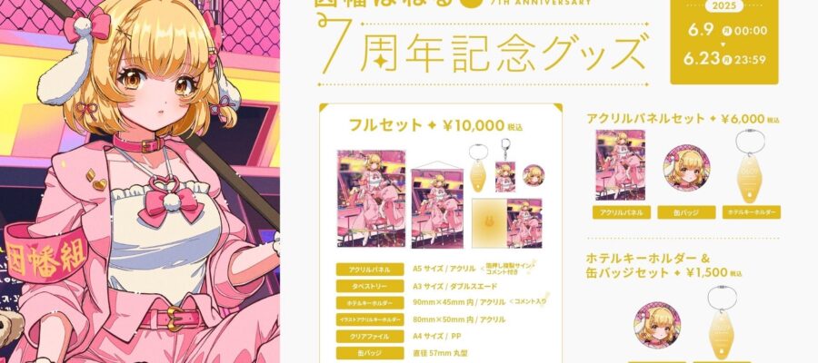 ななしいんくでは、所属する因幡はねるのデビュー7周年グッズが2025年6月23日まで受注販売中となっている。 因幡はねるは6月9日にデビュー7周年を迎えており、現在も所属する宗谷いちか、元メンバーである日ノ隈らんらととも…