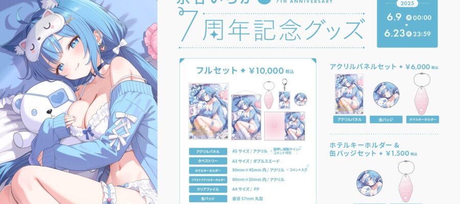 ななしいんくでは、所属する宗谷いちかのデビュー7周年グッズが2025年6月23日まで受注販売中となっている。 宗谷いちかは6月9日にデビュー7周年を迎えており、現在も所属する因幡はねる、元メンバーである日ノ隈らんらととも…