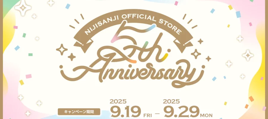 ANYCOLOR株式会社 にじストア5周年を記念したグッズを販売する他、記念キャンペーンも開催! 日頃のご愛顧に感謝するとともに、にじさんじオフィシャルストア5周年を記念して2025年9月19日(金)12時から「にじさん…
