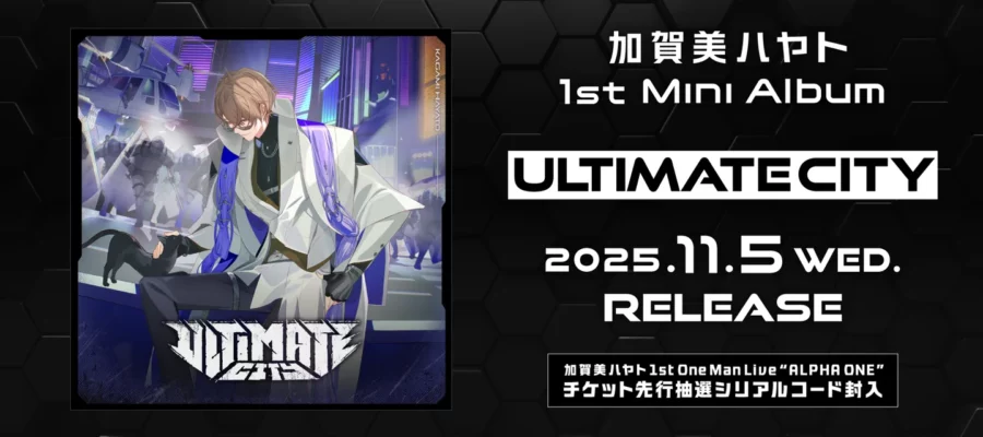 ANYCOLOR株式会社 加賀美ハヤト 1st Mini Album「ULTIMATE CITY」の収録全楽曲が公開!豪華楽曲クリエイター陣よりコメントが到着いたしました! 加賀美ハヤト 1st Mini Album「…