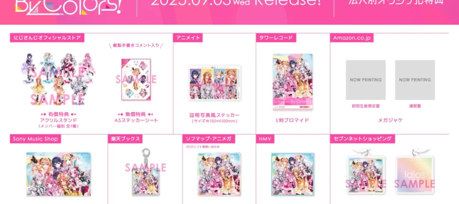 ANYCOLOR株式会社 Idios 1st Mini Album『By Colors!』予約受付中! VTuberグループ「にじさんじ」に所属する「小清水透」「獅子堂あかり」「鏑木ろこ」「五十嵐梨花」「石神のぞみ」「ソ…