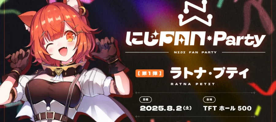 ANYCOLOR株式会社 「にじFAN Party」第1弾の出演はラトナ・プティ!2025年8月2日(土)TFT ホール 500にて開催! にじさんじフェス 2025の閉会式にて情報が初解禁された、ALL FOR FAN…