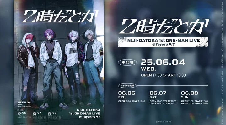 ANYCOLOR株式会社 2時だとか初のワンマンライブが2025年6月4日(水)に豊洲PITにて開催決定!ライブキービジュアルを公開! 2時だとか(読み:にじだとか)は、にじさんじ所属ライバーである「渡会雲雀」「不破湊」…