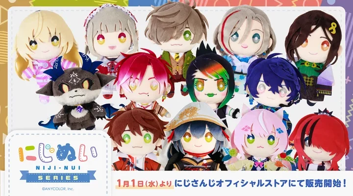 ANYCOLOR株式会社 2025年1月1日(水)0時から「にじぬいシリーズ」販売開始! 人気シリーズ「にじぬい」から、新たに家長むぎ、える、オリバー・エバンス、来栖夏芽、白雪巴、でびでび・でびる、ハ ユン、花畑チャイカ…