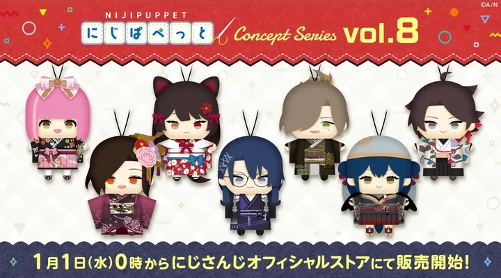 ANYCOLOR株式会社 2025年1月1日(水)0時から「にじぱぺっと コンセプトシリーズ vol.8」の販売開始! 人気の「にじぱぺっと」シリーズから新たにコンセプト衣装を纏った愛園愛美、戌亥とこ、オリバー・エバンス…