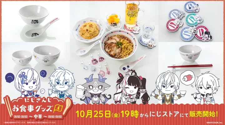 ANYCOLOR株式会社 2024年10月25日(金)19時「にじさんじお食事グッズ4~中華~」の販売を開始! 人気シリーズ「にじさんじお食事グッズ」の新しいデザイングッズが登場!参加ライバーはイブラヒム、でびでび・でび…
