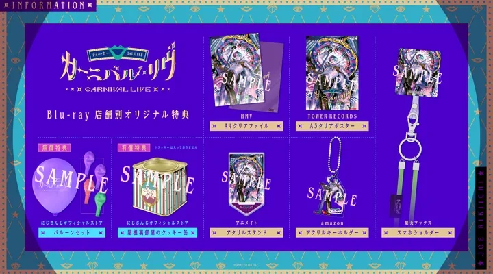 ANYCOLOR株式会社 2024年12月25日(水)発売『ジョー・力一 1st LIVE「カーニバル・リヴ」』Blu-rayの店舗別購入オリジナル特典画像を公開! 2024年6月14日(金)品川プリンスホテルステラボー…