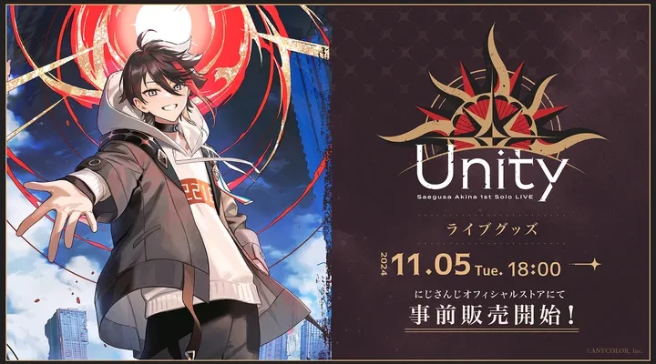 ANYCOLOR株式会社 2024年11月5日(火)18時から「Saegusa Akina 1st Solo LIVE “Unity”」グッズの事前販売を開始! 2024年12月7日(土)に武蔵野…