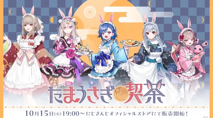 ANYCOLOR株式会社 2024年10月15日(火)19時から「たまうさぎ喫茶」グッズの販売を開始! える、健屋花那、西園チグサ、葉加瀬冬雪、魔界ノりりむの5名のにじさんじライバーが、可愛らしいうさぎメイドスタイルで登…