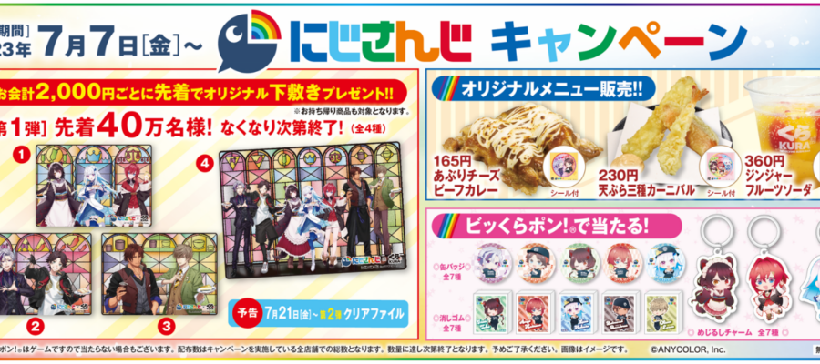 回転寿司チェーン・くら寿司は3日、ANYCOLORが運営するVTuber / バーチャルライバーグループ「にじさんじ」と初のコラボキャンペーンを7月7日より全国店舗で実施すると発表した。 にじさんじ内ユニットの「ふわぐさ…