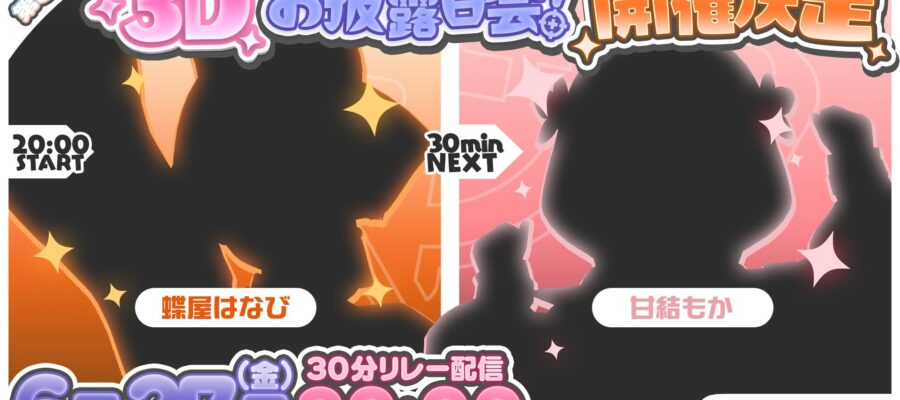 ぶいすぽっ!に所属する甘結もかと蝶屋はなびが、6月27日20時から3Dをお披露目すると発表した。 ぶいすぽっ!ではこれまで23人のタレントがデビューし、現在まで所属していたが、もっとも直近でデビューしていた甘結と蝶屋の2…