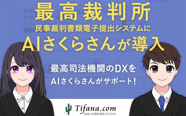 株式会社ティファナ・ドットコム AIアバター接客「AIさくらさん」が、2022年5月30日より、最高裁判所が管理する裁判書類提出用のWebサイトにてカスタマーサポートとしての案内を開始し、裁判所のDX実現に貢献します。I…