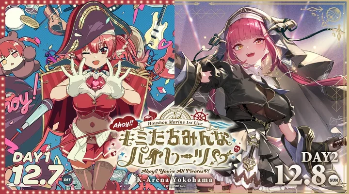カバー株式会社 2024年12月7日・8日、女性VTuberグループ「ホロライブ」所属の宝鐘マリンが、1st Live 「Ahoy!! キミたちみんなパイレーツ♡」をKアリーナ横浜で開催した。 マリンはホロライブの3期生…