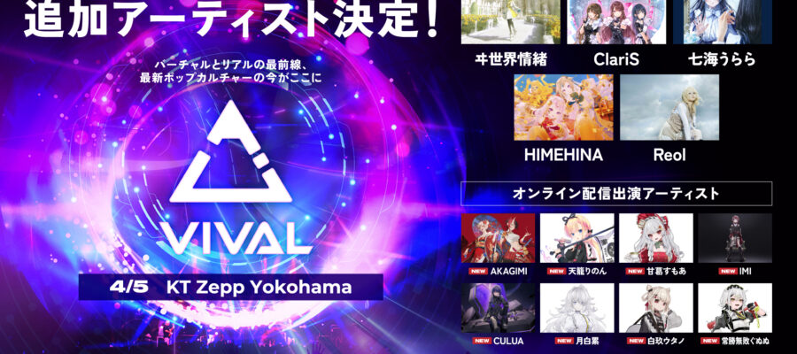 4月5日に開催されるVTuber~リアルアーティストの共演をコンセプトとしたライブイベント「VIVAL」(読み:ヴァイヴァル)で、AKAGIMI、天籠りのん、甘葛すもあ、IMI、CULUA、月白累、白玖ウタノ、常勝無敗ぐ…