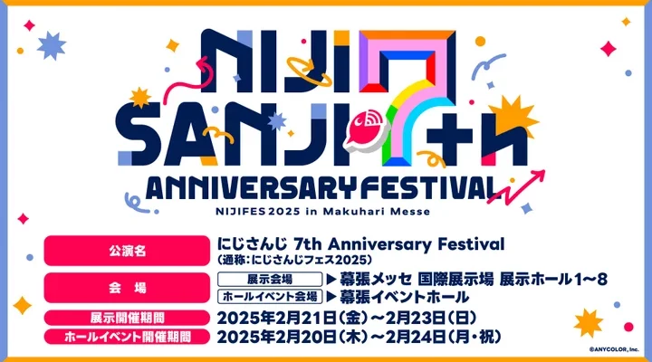 ANYCOLOR株式会社 出演ライバー総勢150名以上!最新情報を一挙公開! 2025年2月21日(金)~23日(日)に幕張メッセ 国際展示場 展示ホール1~8で開催される「にじさんじフェス2025」の最新情報を、202…