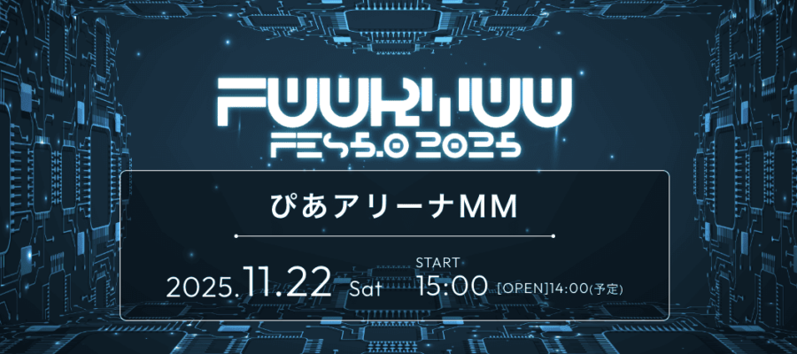 クオラスは17日、リアルとバーチャルが融合する次世代フェス「FUURYUUFES 5.0 2025」を2025年11月22日(土)、ぴあアリーナMMにて開催することを発表。また出演アーティストの第1弾を公開。スペシャルゲ…
