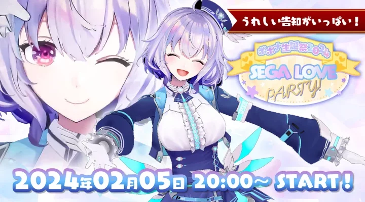 株式会社セガ 株式会社セガは、2024年2月5日(月)20:00より、セガ公式VTuber・ポポナの誕生日を記念した3Dライブ「ポポナ生誕祭2024 SEGA LOVE PARTY!」を、YouTubeおよびTikTok…